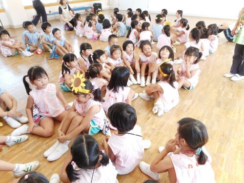 8月生まれのお誕生会に今日は7月生まれのお友だちも2人参加しました。 7月のお誕生会を残念ながらお休みしていたからです。 今日のお楽しみは、絵本とダンスでした。 かみさまからのおくりもののお話を聞いた後、エビカニクスとチョケマッチョ!の曲に合わせ…