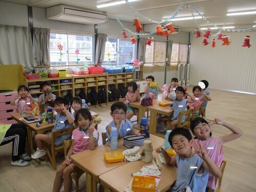 どのクラスも、七夕に向け織姫様と彦星様を保護者の方と一緒に製作しました(*^^*) みんなお家の人との活動はとっても嬉しそう いいお天気だったので、クラスみんなで力を合わせて作った大きな七夕飾りも見ていただけて良かったです。七夕の日も、いいお天気…