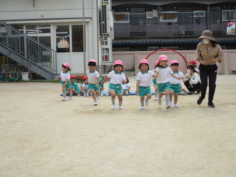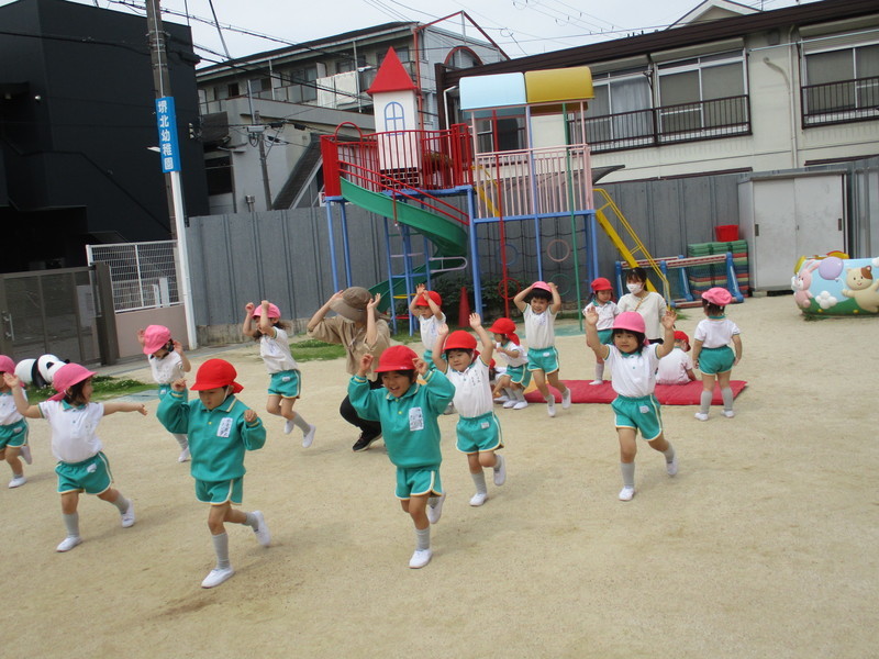 どんちゃん先生とやった事を思い出して、動物に変身したり、コロコロ転がったり、楽しく体を動かしました(#^.^#)