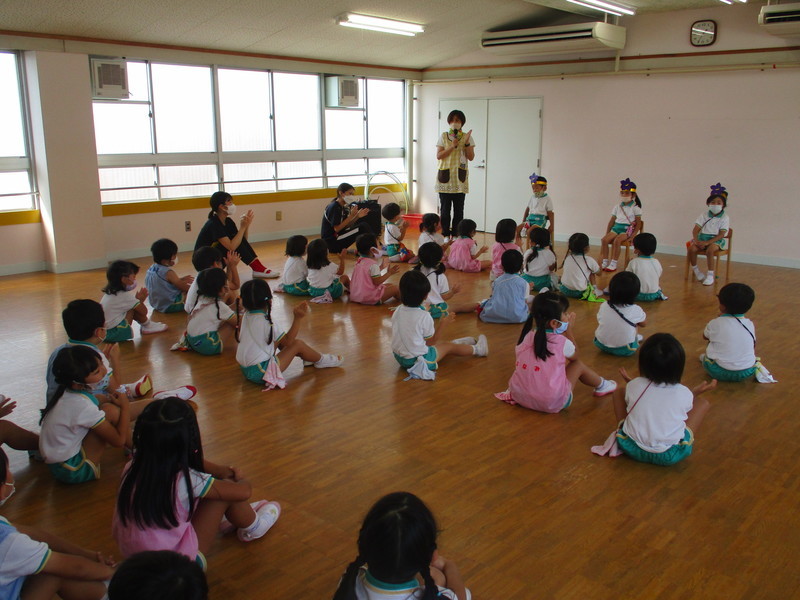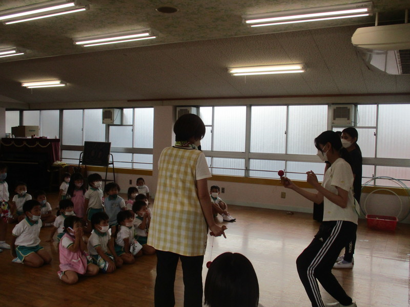 2022-09-30 お誕生日会 9月にお誕生日を迎えたお友だちは、5人でしたが、残念ながら2人お休み😢 今日の先生からのお楽しみは、先生たちの運動会です(*^▽^*) 縄跳び、けん玉、フラフープ、手押し相撲を競ってもらい、子どもたちには、先生たちの応援団になってもらいました(*^▽^*) 先生たちも、一生懸命頑張りました💪(≧▽≦) 皆も運動会、力いっぱい頑張ってね\(^o^)/