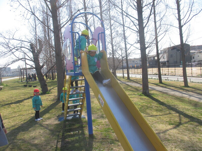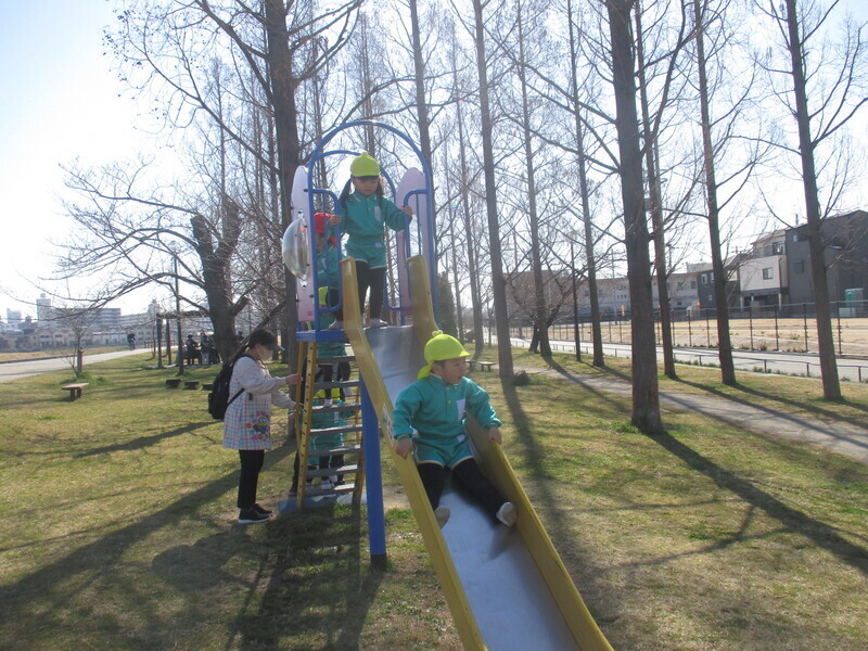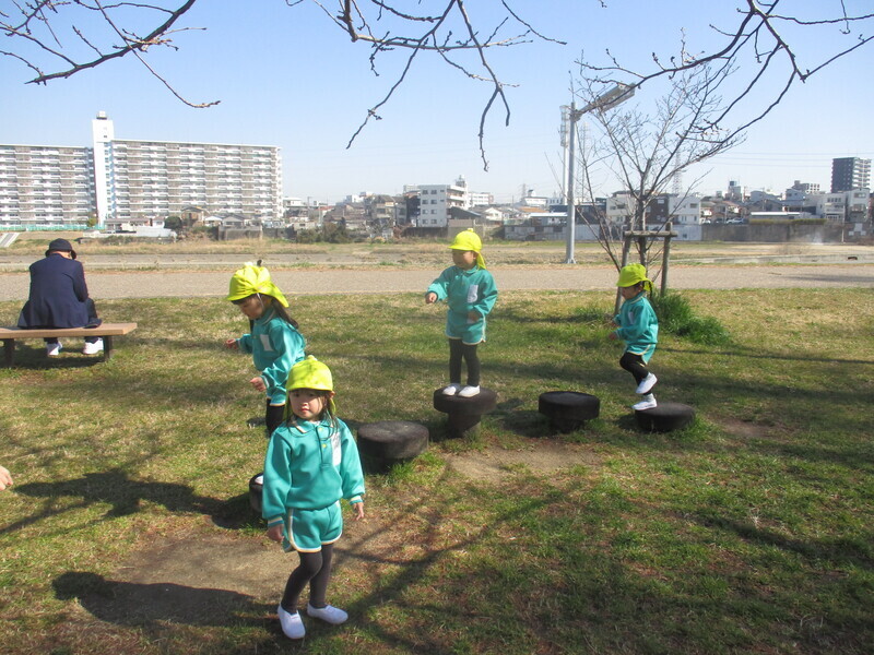 満3歳のお友だちだけで、大和川の方へ遊びに行きました(*^^*)